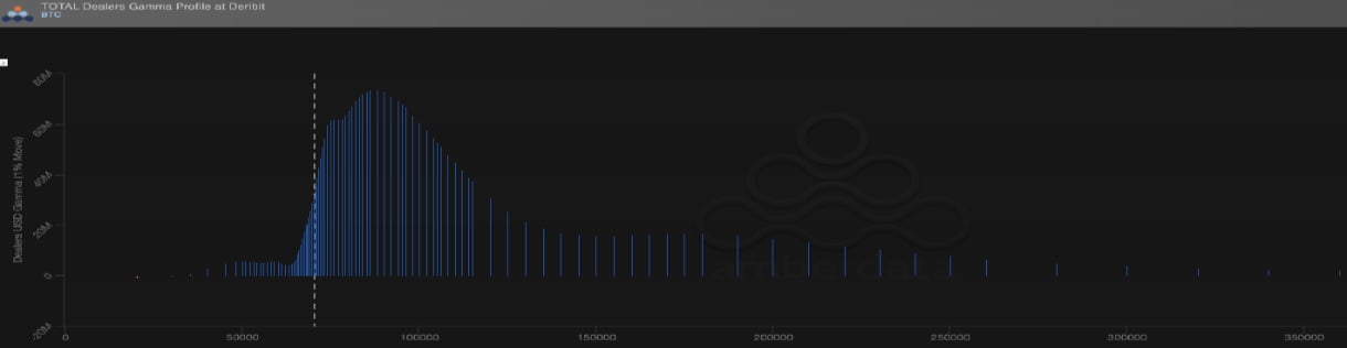 Positioning indicates that gamma exposure is currently longer in Bitcoin, particularly on the upside. This could support the spread if markets begin trending higher, although Ethereum gamma may be understated due to significant upside selling occurring in OTC markets.