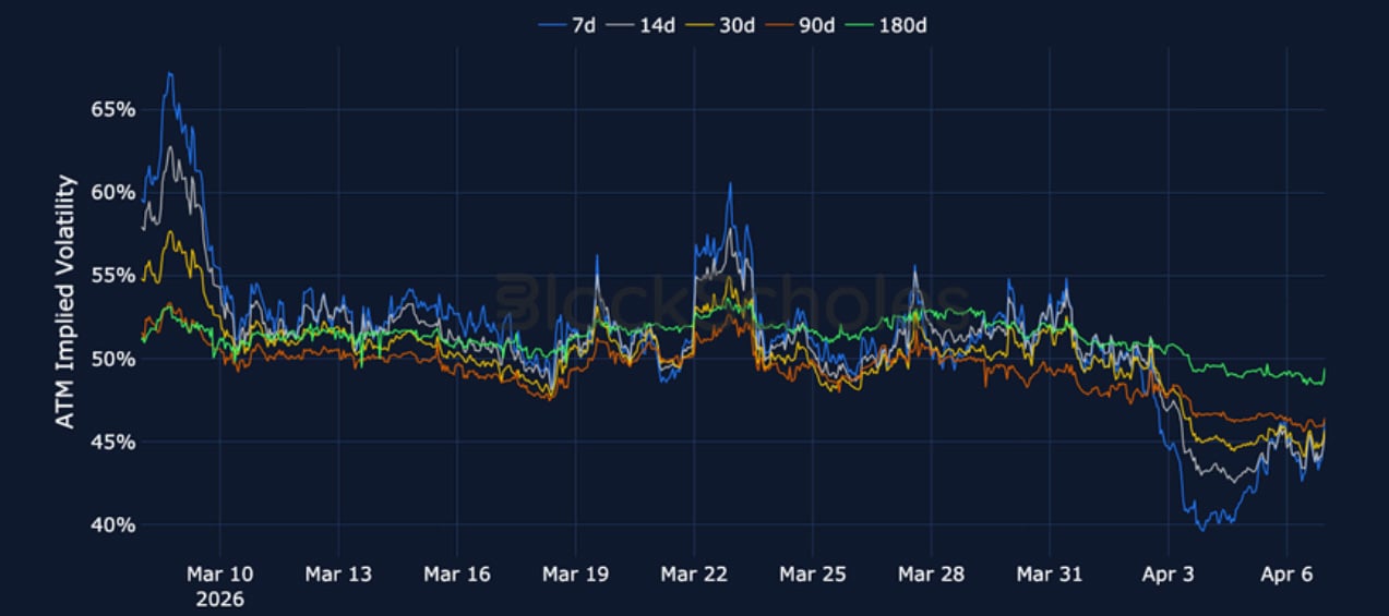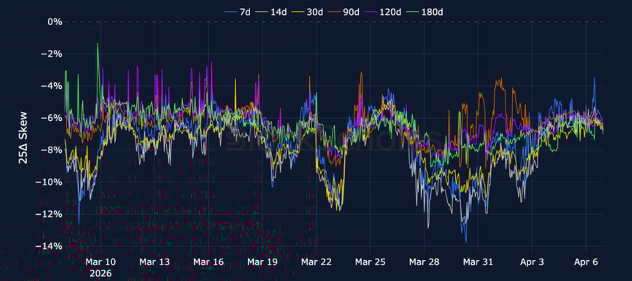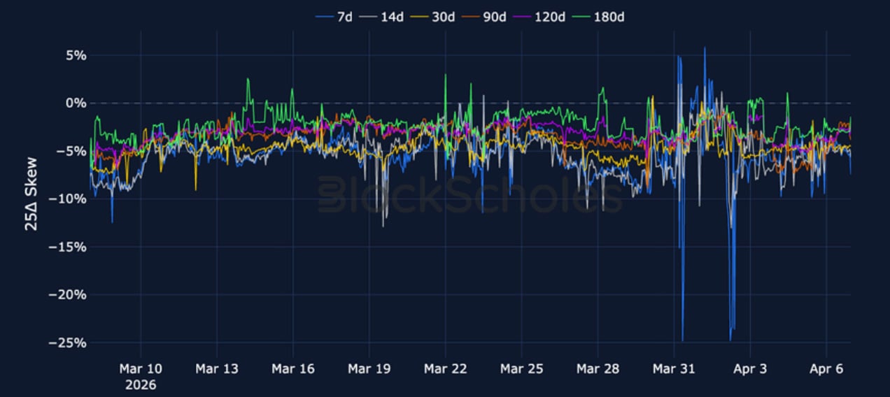 ETH 25-Delta Risk Reversal – Skews remain bearish across the term structure as Iran approaches Trump’s Tuesday night deadline for a deal.