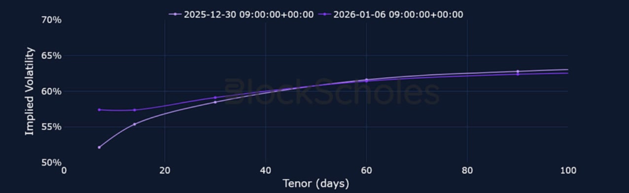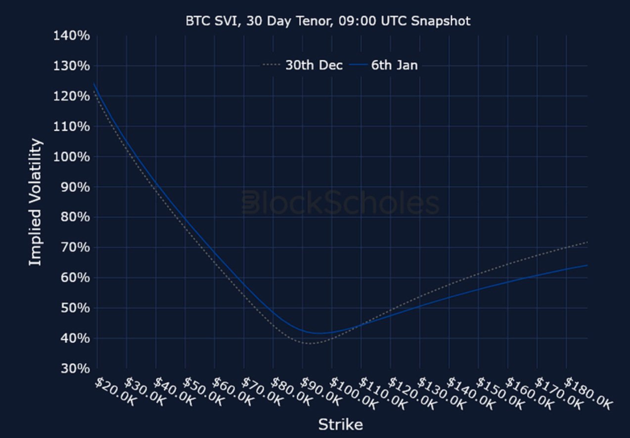 BTC SVI ATM IMPLIED VOLATILITY – The US’s military operation in Venezuela and a return back from the festive period saw ATM IV levels rise last week.