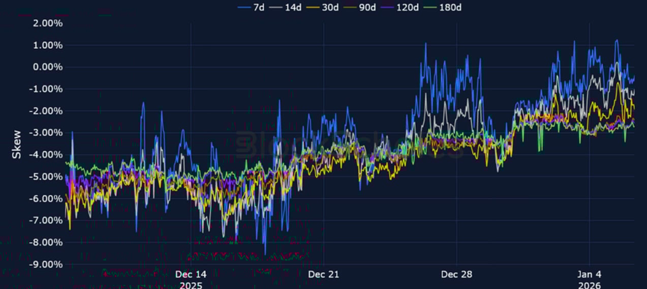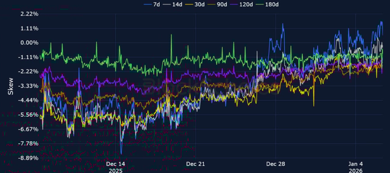 BTC 25-Delta Risk Reversal – While most of the volatility curve still shows a put premium, the peak of December’s bearishness has mostly been priced out at all tenors, coinciding with Spot ETF inflows and the current spot rally.