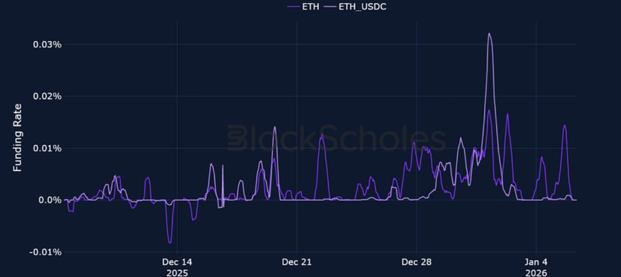 ETH FUNDING RATE – ETH funding rates have been positive in the first week of the new year, coinciding with ETH spot price firmly reclaiming $3K.