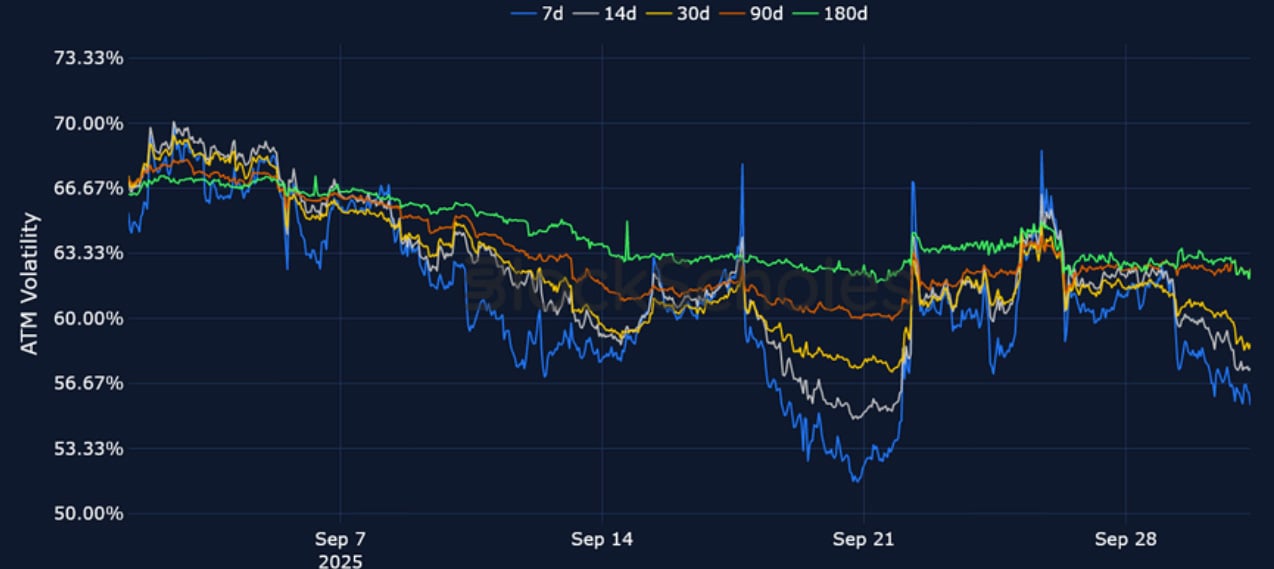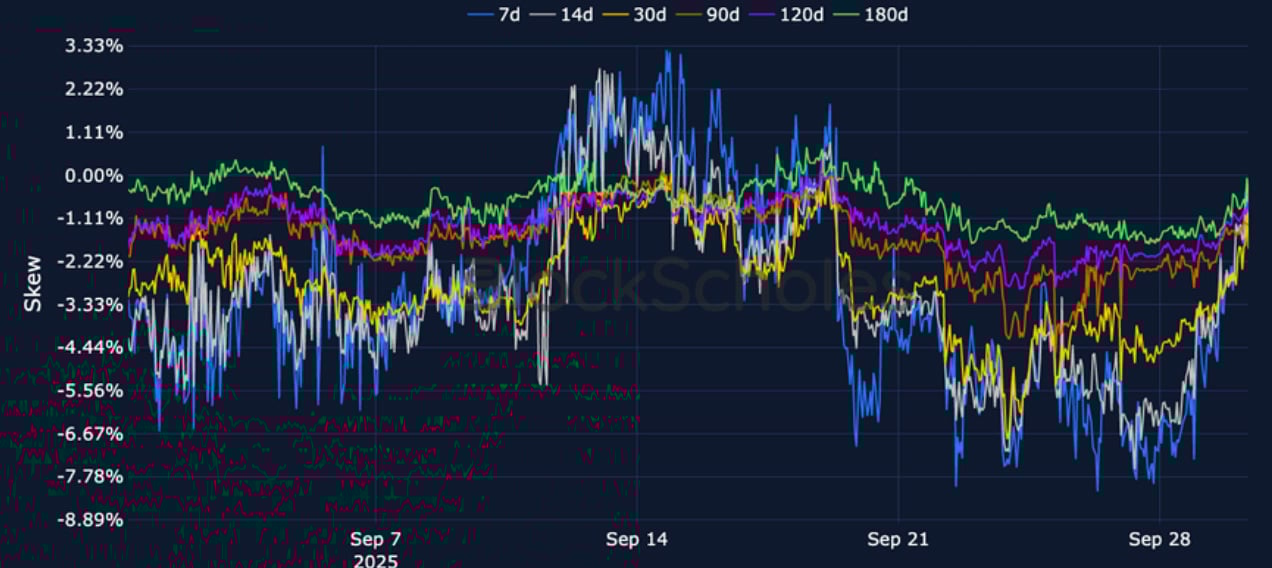 BTC 25-Delta Risk Reversal – Skew levels across the term structure have been tilted towards OTM puts for most of September, however short-tenor skews are showing signs of recovery heading into October.