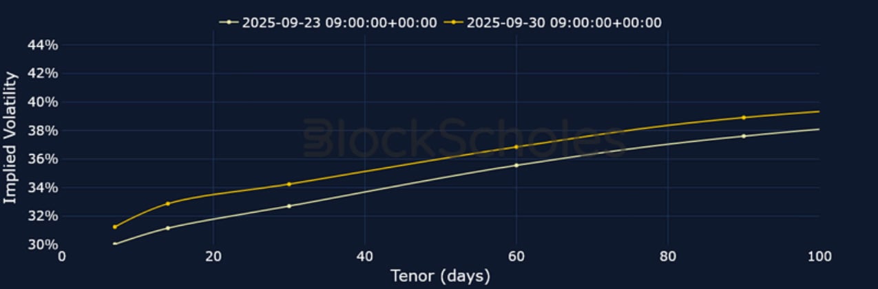 The past week began with the largest long liquidation event of the year, as more than $1.5B in long positions was liquidated on Monday Sep 22, 2025. Both BTC and ETH subsequently fell below key support levels of $110K and $4,000, respectively. That pullback in spot price was also exacerbated by continued outflows from Spot Bitcoin and Ethereum ETFs. ATM implied volatility levels shot up higher during the liquidation event, before settling back down, and volatility smiles for most of the second half of September (post-FOMC) progressively skewed further towards OTM puts with each spot price selloff. However, the rally this week in crypto-asset spot prices, which began over the weekend, has pushed BTC back to $116K and Ether to $4,300. Volatility smiles have also eroded much of their negative skew towards puts over the past few days, with smiles for short-tenor BTC and ETH options now close to neutral. That has also been supported by major inflows into Spot ETFs – Bitcoin ETFs purchased $518.0M of bitcoins yesterday, while ETH Spot ETFs outperformed with inflows of $546.9M.