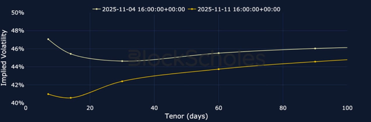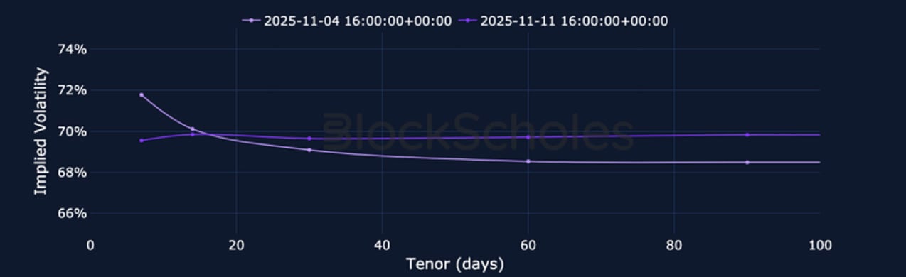 ETH SVI ATM IMPLIED VOLATILITY – Friday’s volatile spot moves resulted in another, brief inversion in the term structure that has yet to fully resolve.