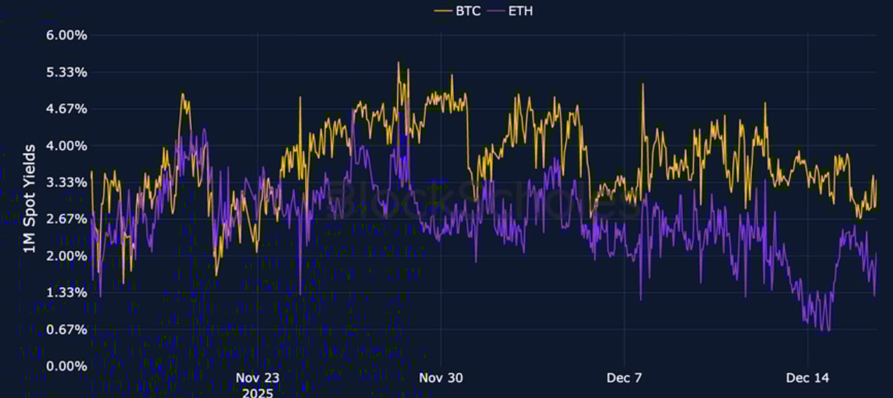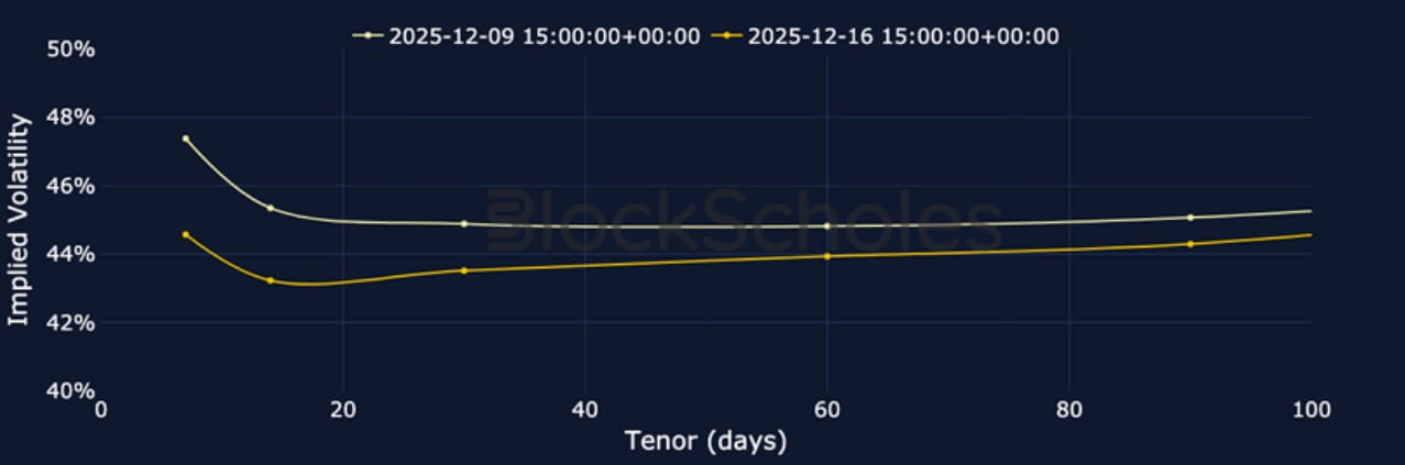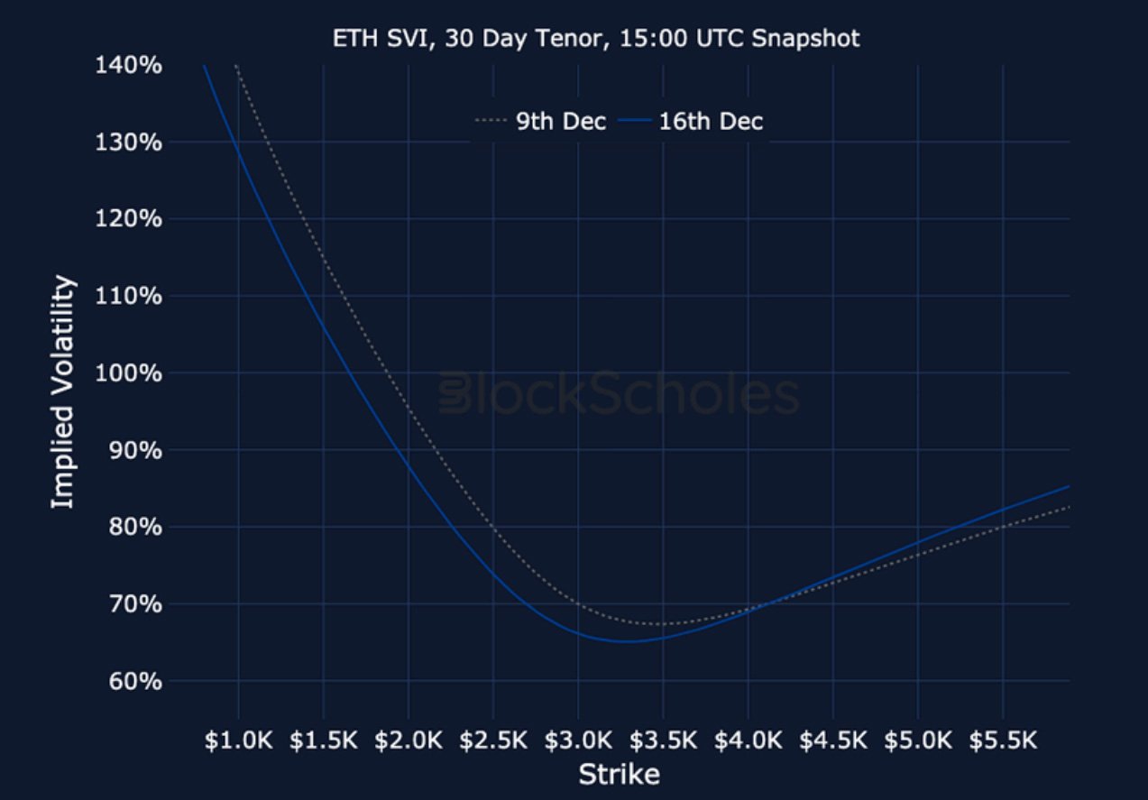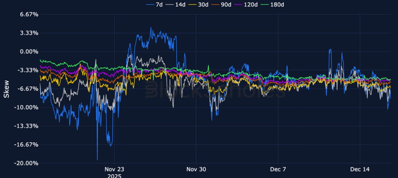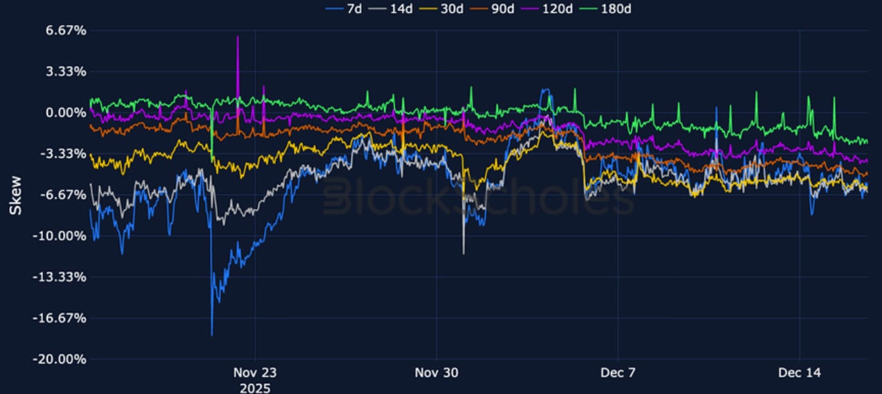 ETH 25-Delta Risk Reversal – Volatility smile skews have slipped lower, with little reaction to the FOMC’s Dec 10 interest rate cut.