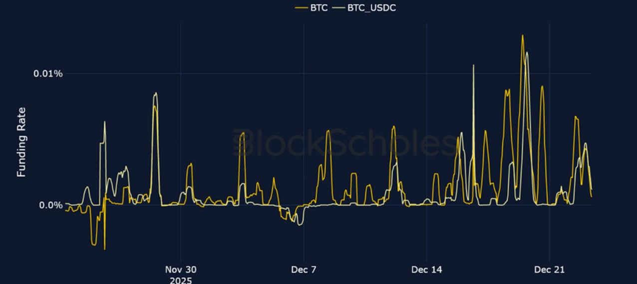 BTC FUNDING RATE – Despite several caveats, a cooler-than-expected CPI report in the US helped push BTC past $89K on Dec 19, 2025 and coincided with the highest positive funding rate so far this month.