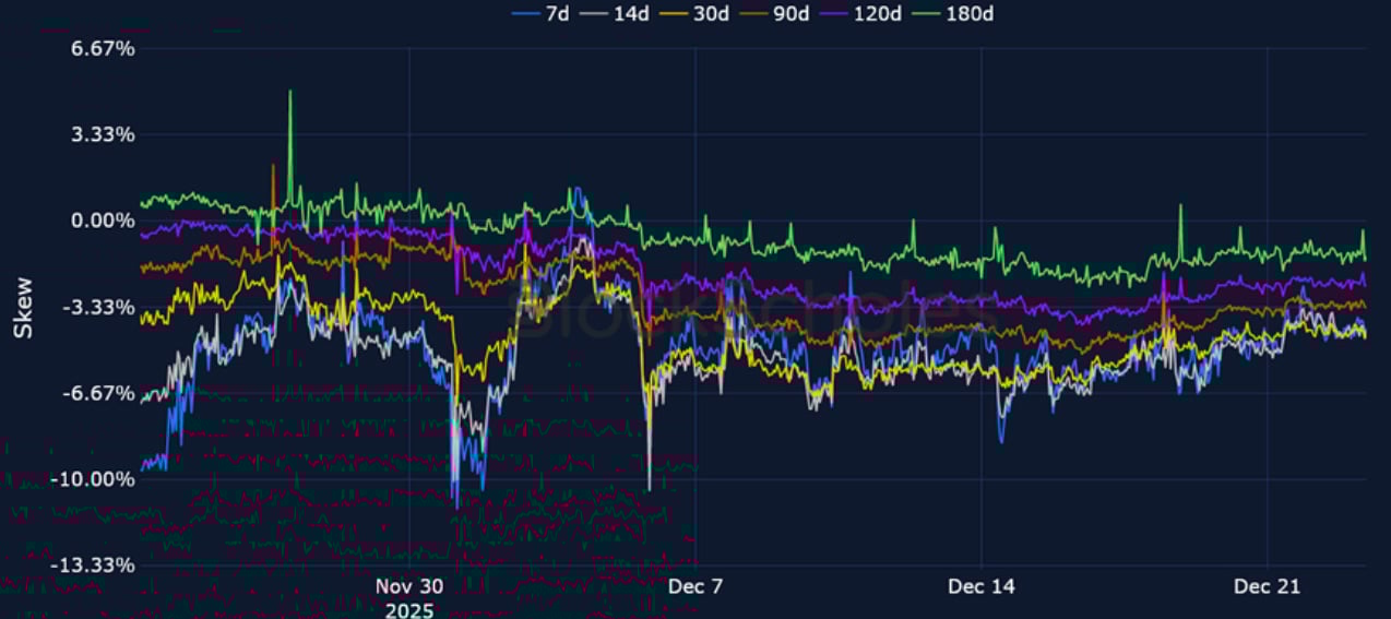 BTC 25-Delta Risk Reversal – While a Santa rally may be on the cards for US equities, BTC options markets maintain a bearish put premium at all tenors.