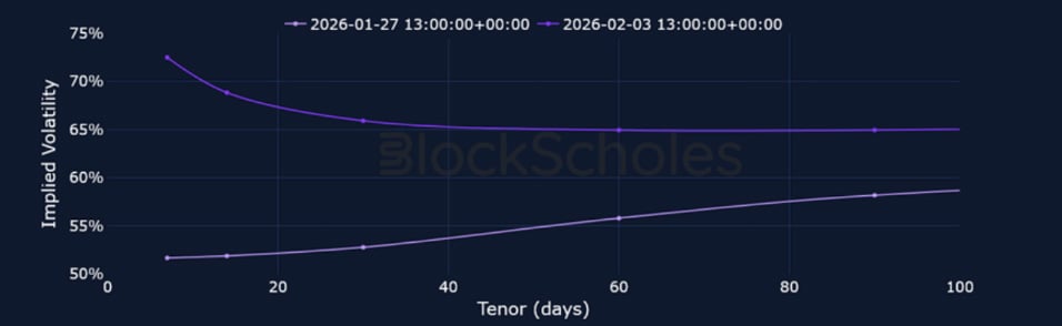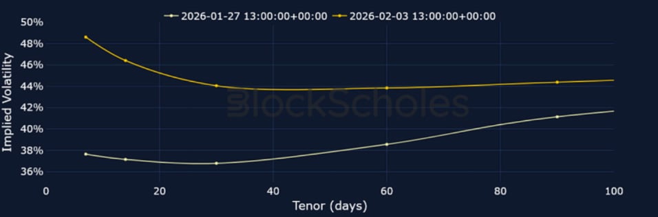 ETH 25-Delta Risk Reversal – After spending much of early January close to neutral levels, 7-day ETH skew fell to its lowest since Liberation Day in April 2025.