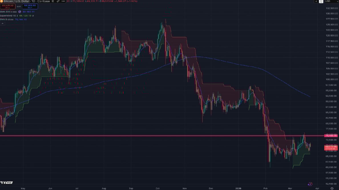 Bitcoin remains range-bound, holding steady despite growing pressure across traditional markets. Equities are weakening, credit conditions are softening, and oil has surged—yet crypto has not followed risk assets lower.