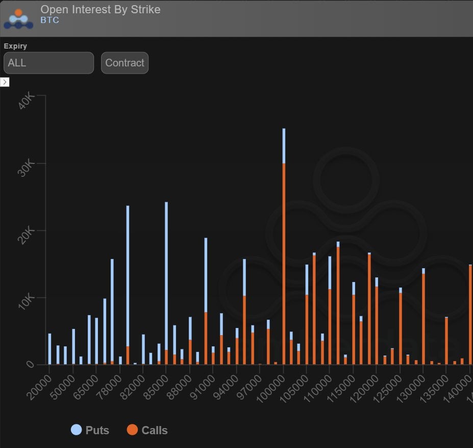 This places the 100k Calls OI as dominant, towering over the Dec 80+85k Puts that were the main focus as BTC broke 100k and plummeted to test 80k.