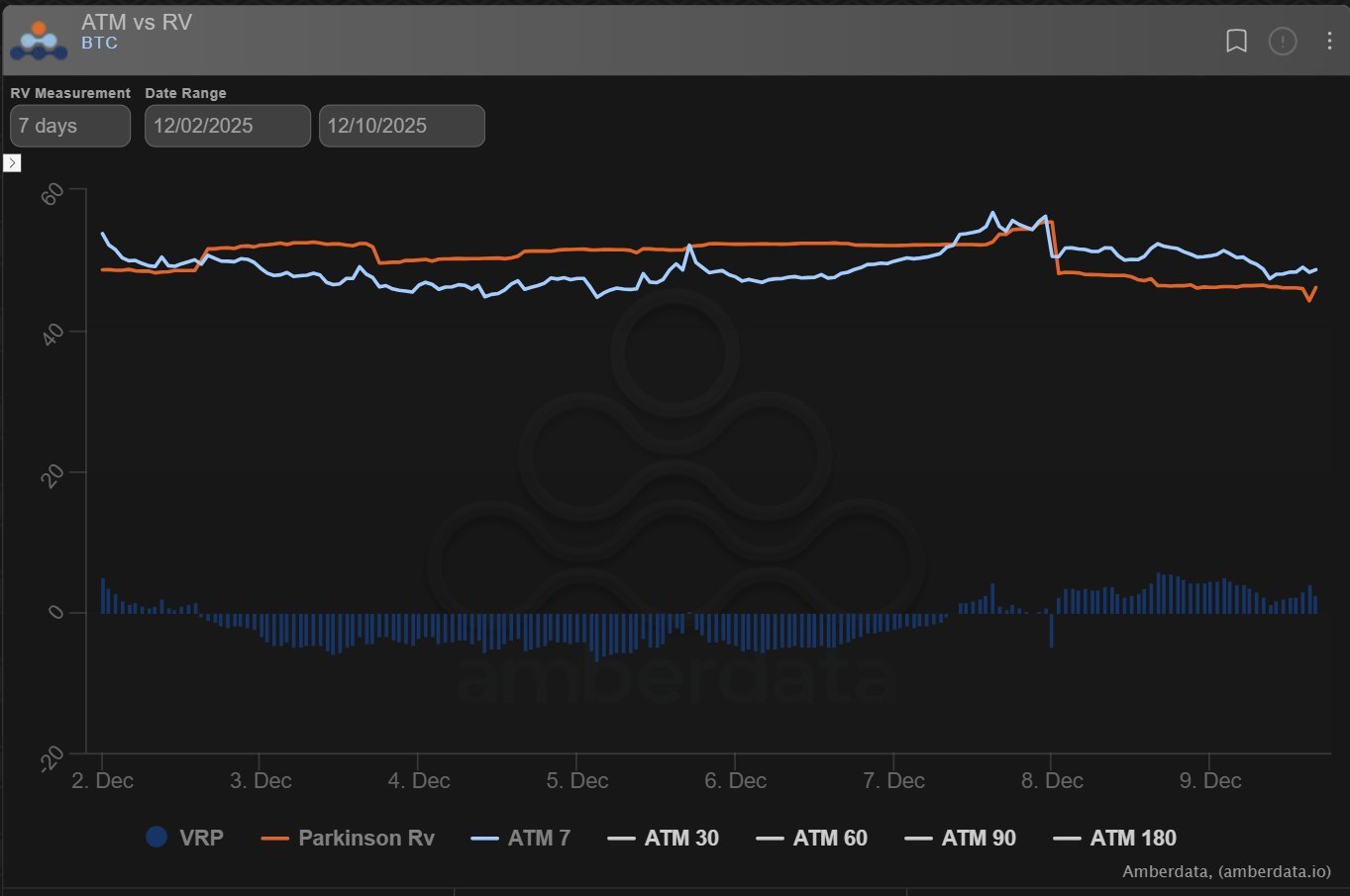 BTC Put Skew remains elevated on account of enduring Dec 85+80k Put caution. But recently, despite sentiment, Xmas 100k+ target has grown in appetite via additional purchases of Dec 100k+ Call spreads, adding to last report’s colossal Dec26 100k+ Call Condor play. FED awaits.