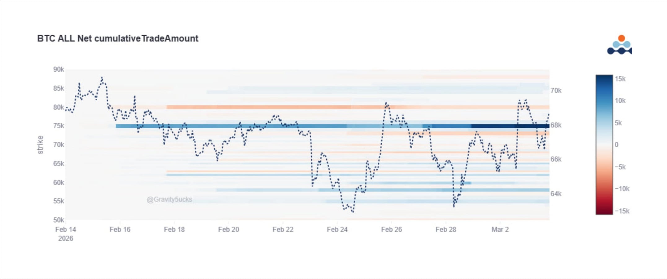 ‘Blue’ 75k Strike dominates as an accumulated Strike over the last couple weeks and increasing over the past few days.