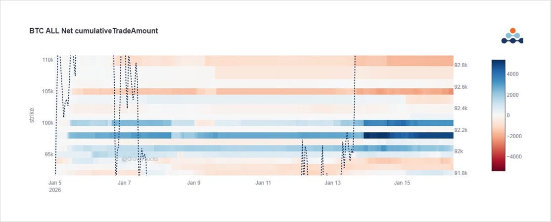 The Jan30th 98k+100k and Feb27th 100k Calls dominate the overall picture within current flows.